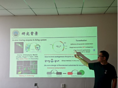刘诗宇老师首先对研究背景进行了深入浅出的讲解,指出了基于荧光探针的活体水平蛋白分析方法相对于传统蛋白分析方法的优势与特点。接着,刘老师详细介绍了他及所在的科研团队在丁酰胆碱酯酶、胰凝乳蛋白酶、中性粒弹性蛋白酶、羧酸酯酶、氨肽酶等蛋白的靶向分子探针开发中所取得的系列研究进展,并通过举例展示了:高对比度肿瘤手术导航、无损阿兹海默症脑部检测等荧光小分子探针在多种重大疾病检测中的应用,让同学们了解了区别于传统医学研究方法和疾病检测方法的全新领域。
