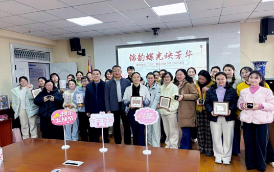 春和景明,万物复苏。为庆祝第116个“三八”国际妇女节,丰富女教职工精神文化生活,3月5日下午,医学部“锦韵螺光映芳华”非遗手工DIY活动在14教东502会议室温馨举办。女教师们欢聚一堂,共赴一场春日的美学之约。