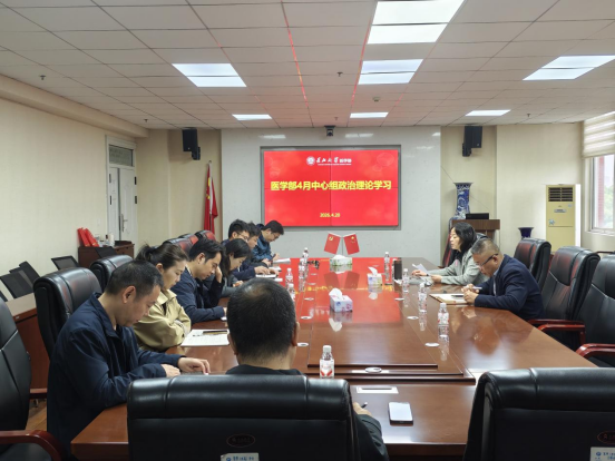 4月20日上午,医学部党委理论学习中心组在14教东502会议室召开2026年4月政治理论学习,会议由医学部党委书记黄群俊主持。